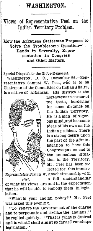 Samuel West Peel, the first native-born Arkansan elected to the U.S. Congress and one of the most powerful political figures to emerge from Northwest Arkansas.