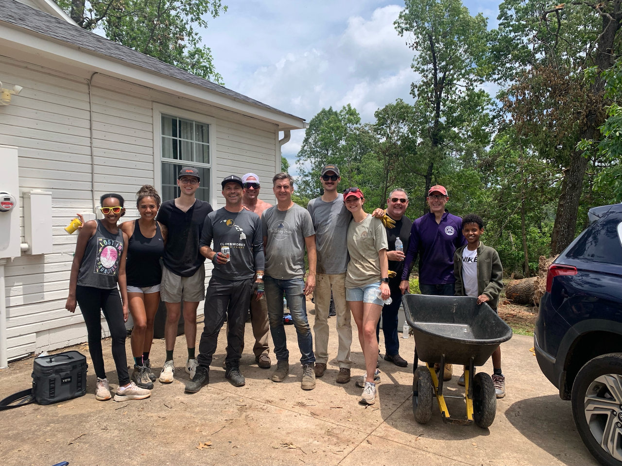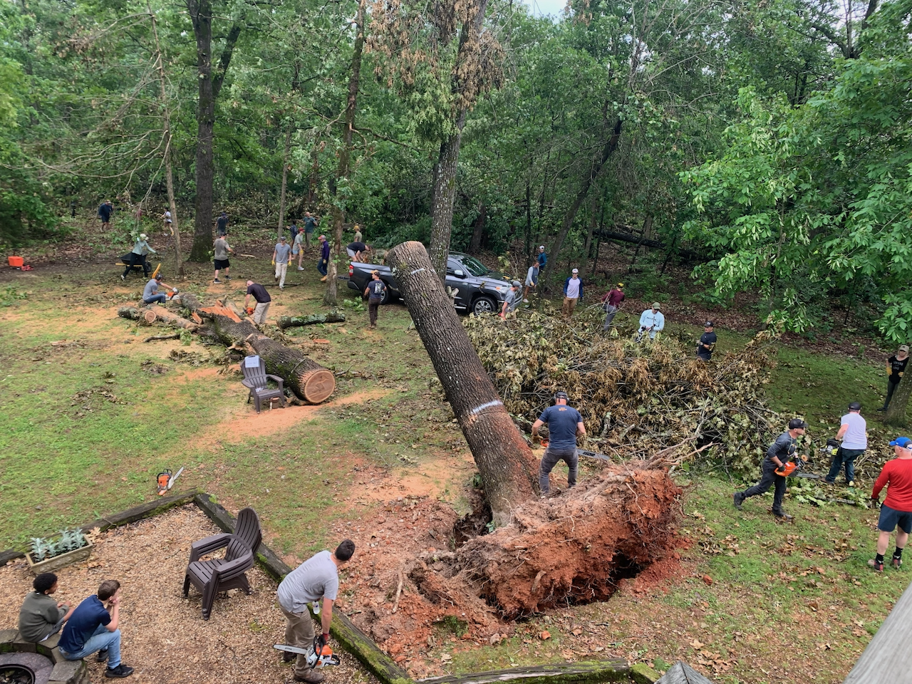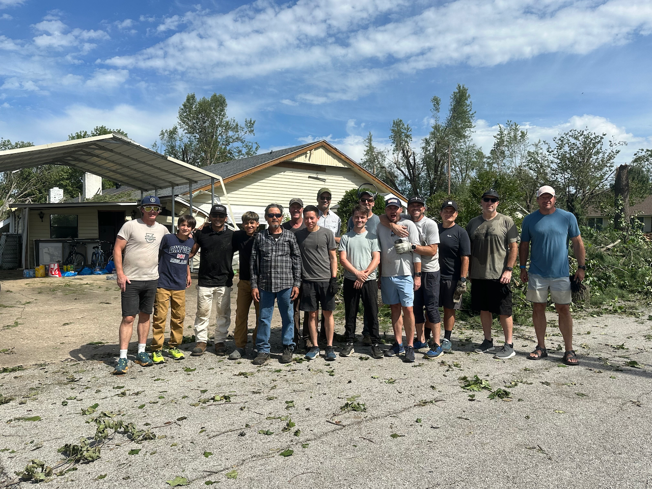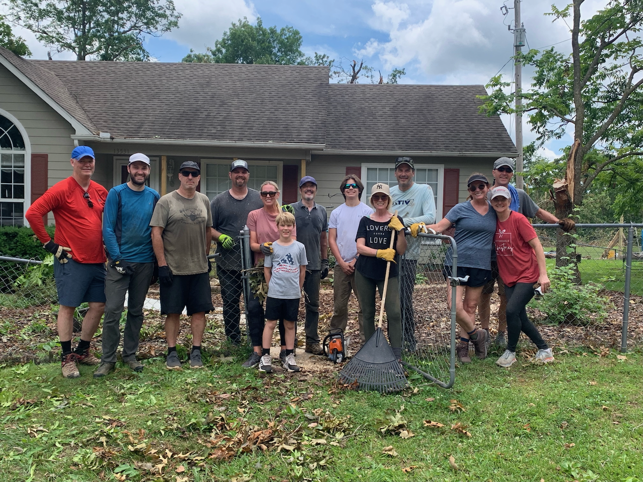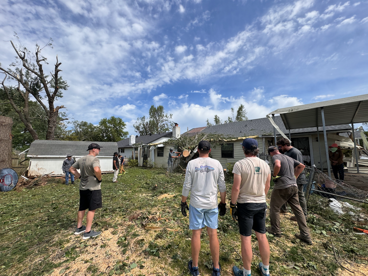 These voices are from a Saturday workday with Bentonville Ride Club to help a family east of Rogers clean up storm debris. They lead a church in East Rogers and serve an already vulnerable community who was deeply impacted by the recent storms. So, to serve those who serve others so that they can be available to meet the needs around them, we hoped that by alleviating as much of their own personal concerns, it could help multiply the impact.