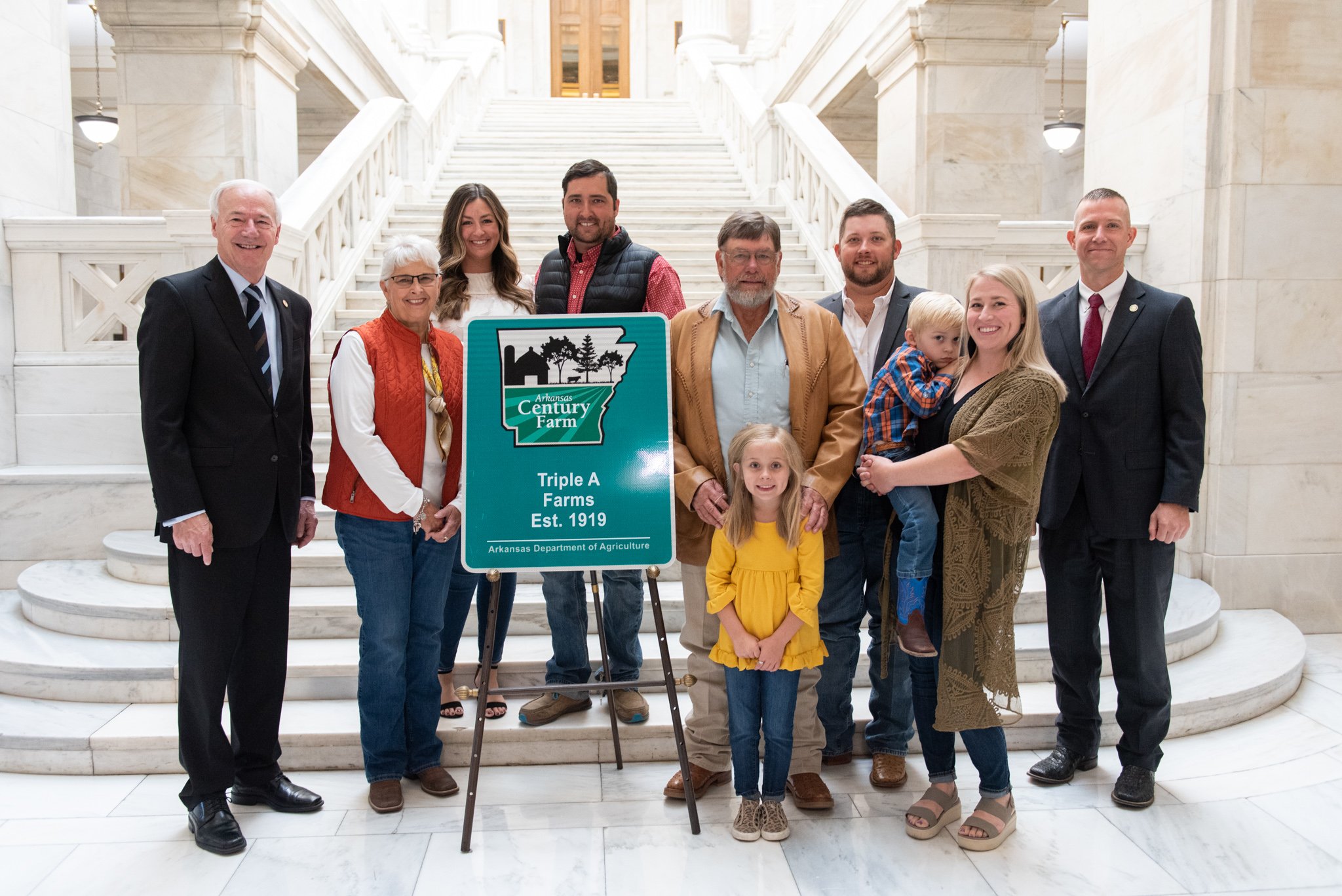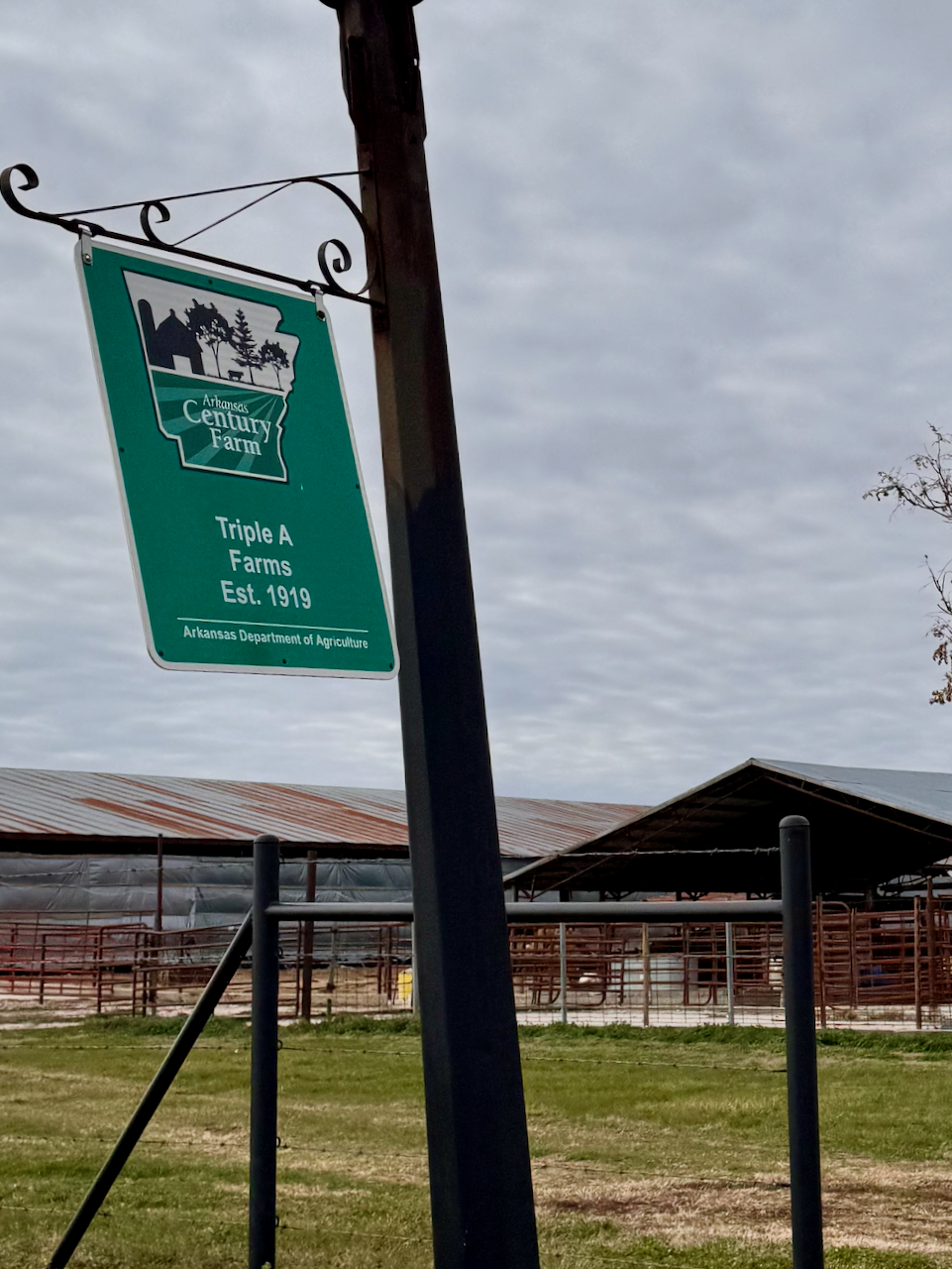 Judge Moehring mentioned that almost all the dairy farms are now gone from the county, but on this route you'll see one as we prepare to cross Highway 12. This dairy farm is AAA Farms. It was established in 1919 and is an Arkansas century farm. What this means is that they can trace the ownership of this farm through the same family back more than a hundred years.