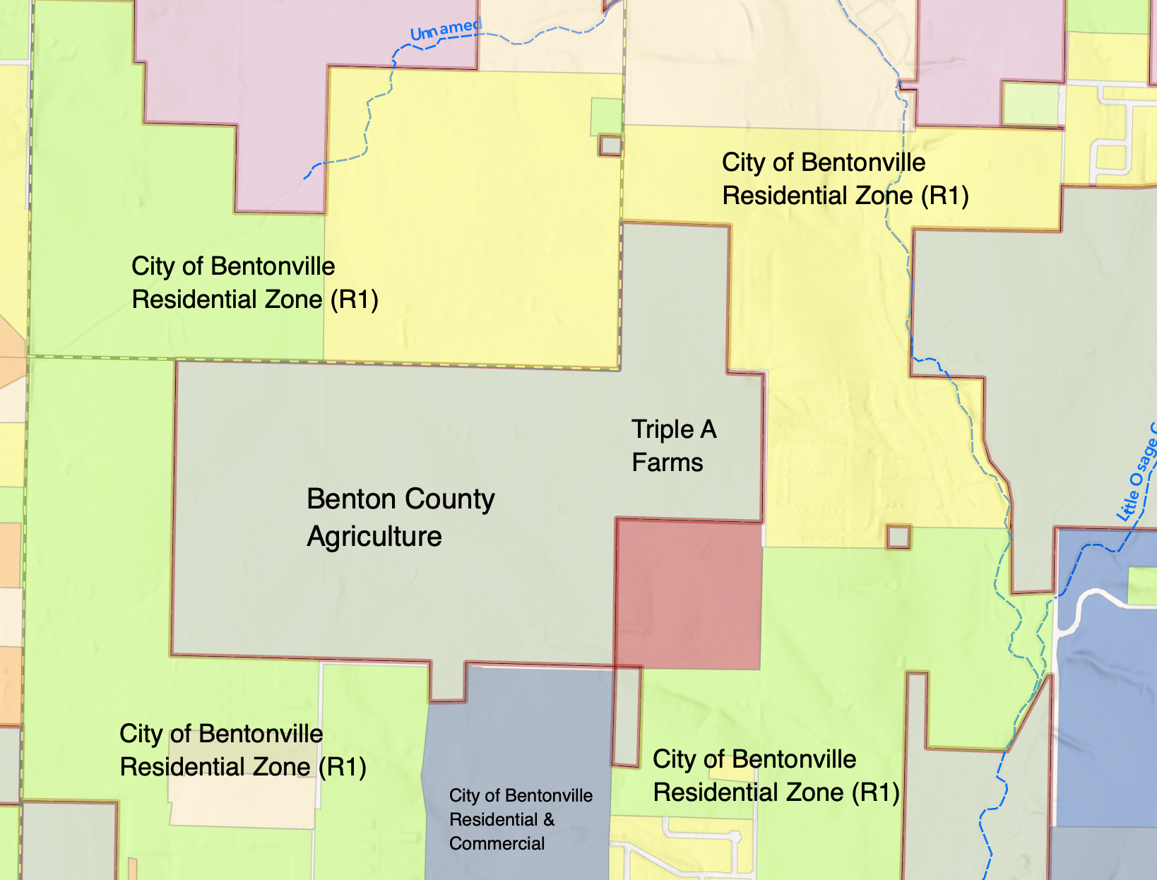 This farm is surrounded by new housing subdivisions on all sides. It is still considered county land. But the city of Bentonville has this small parcel surrounded with zoning of all kinds. We'll talk more about the city in the coming episodes, but after more than a hundred years of farming, time certainly seems to be closing in from all sides.